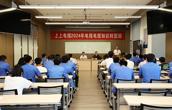 7月29日,江蘇上上電纜集團(tuán)2024年電線電纜知識(shí)轉(zhuǎn)型班順利開班。本次培訓(xùn)主要針對(duì)技術(shù)、生產(chǎn)、裝備上新進(jìn)本科及以上學(xué)歷員工,涉及《電介質(zhì)物理》、《電纜外貿(mào)英語》、《電氣絕緣測(cè)試技術(shù)》、《電力電纜》、《電纜材料》、《電纜工藝》等12門課程256課時(shí),歷時(shí)兩個(gè)月。哈爾濱理工大學(xué)電纜專業(yè)教授及集團(tuán)內(nèi)部業(yè)務(wù)骨干受邀擔(dān)任此次轉(zhuǎn)型班的授課老師,對(duì)轉(zhuǎn)型班學(xué)員進(jìn)行系統(tǒng)培訓(xùn)。集團(tuán)總經(jīng)理助理狄洪杰出席開班儀式并講話。