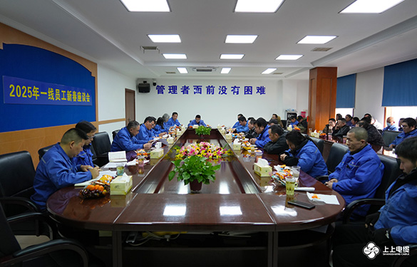 1月16及20日,江蘇上上電纜集團召開了2025年一線員工及技術管理人員新春座談會。集團副總經理蔣愛民、副總經理劉雄軍、總工程師李斌、總經理助理狄洪杰、相關職能部門負責人以及來自技術條線、管理條線、分廠一線的員工代表參加此次會議。
