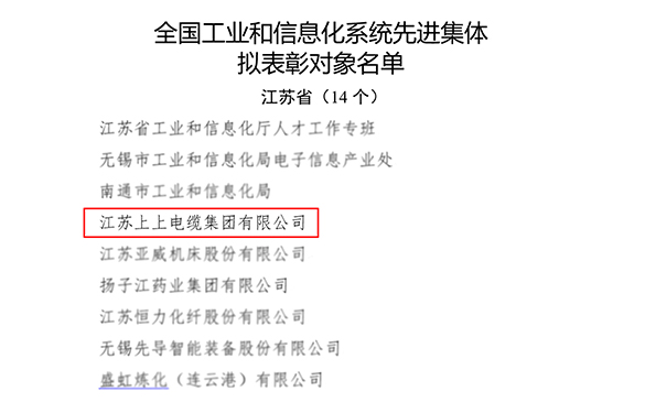 近日,國家工業和信息化部公布了“全國工業和信息化系統先進集體”擬表彰名單,江蘇上上電纜集團憑借在技術創新、智能制造及產業升級方面的卓越表現成功入選。這是繼上上獲評“綠色工廠”、“綠色供應鏈管理企業”之后再次獲得工業和信息化系統的又一重量級榮譽,彰顯了線纜行業高質量發展的強勁實力。