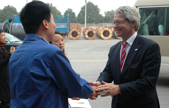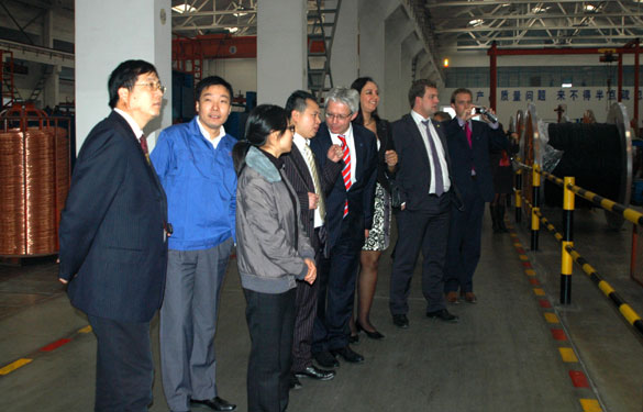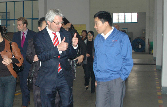 在參觀過程中,萊瓦頓市市長費德克龍感慨道:上上電纜擁有世界一流的廠房和先進的生產設備,有著規范的企業管理和優秀的企業文化,企業員工擁有良好的精神風貌,不愧為中國電纜行業的領軍企業。他希望今后兩市企業之間多多交流學習發展經驗,以尋求更多的合作商機。