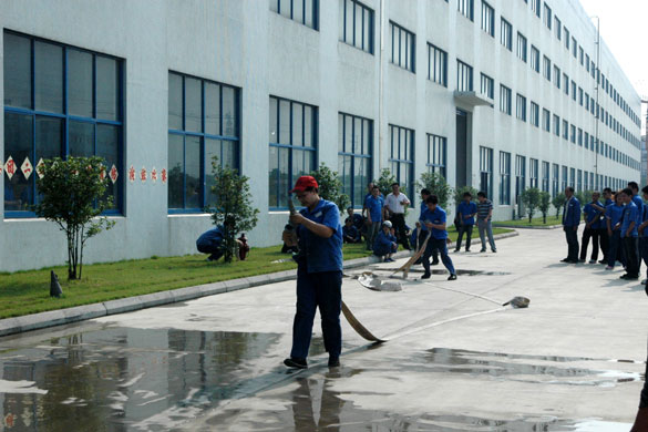 在隨后舉行的消防模擬演練中,各分廠、物流部、行政、木盤組等12個代表隊36人參加了此次活動。模擬演練分為兩個環(huán)節(jié),第一個環(huán)節(jié)為滅火器定點滅火,第二個環(huán)節(jié)為接消防水帶滅火,分別檢驗員工對滅火器及消防水帶的掌握及運用情況。同時,為檢驗各兼職消防員的快速反應(yīng)與配合默契程度,演練使用競賽制,每一位參賽員工都認真參與,嚴格按照消防要求進行操作,整個過程緊張有序,吸引了不少員工前來觀戰(zhàn)。經(jīng)過激烈的角逐,最終木盤組獲得第一名,船纜分廠獲得第二名,超高壓分廠獲得了第三名。