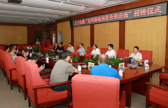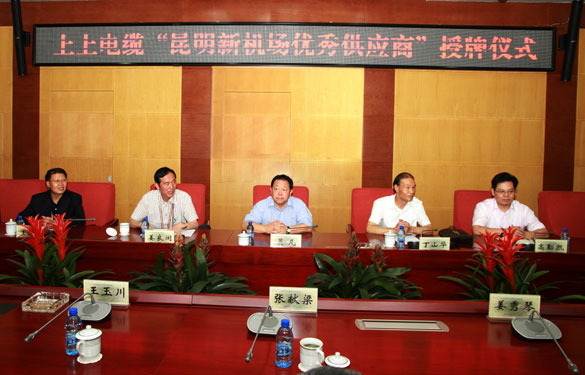 7月10日,昆明新機場建設指揮部召開優秀供應商授牌大會,昆明新機場建設指揮部指揮長吳凡、副指揮長姜良閩、上上集團董事長、總經理丁山華、副總經理高勤凱等領導出席會議。會上,昆明新機場建設指揮部授予江蘇上上電纜集團優秀供應商獎牌,對上上集團在昆明新機場建設中所作出的貢獻表示感謝。