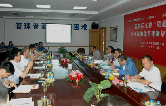 9月14日,國(guó)家標(biāo)準(zhǔn)化管理委員會(huì)巡視員廖曉謙一行來到江蘇上上電纜集團(tuán),組織進(jìn)行質(zhì)量月企業(yè)標(biāo)準(zhǔn)體系建設(shè)幫扶活動(dòng),上上集團(tuán)是江蘇省三家?guī)头銎髽I(yè)之一。會(huì)議由江蘇省質(zhì)監(jiān)局標(biāo)準(zhǔn)化處調(diào)研員鐘衛(wèi)東主持。集團(tuán)董事長(zhǎng)、總經(jīng)理丁山華、管理者代表副總經(jīng)理朱洪祥等公司領(lǐng)導(dǎo)出席會(huì)議。