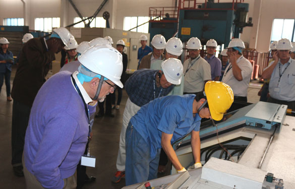 10月16日,“國際原子能機構(IAEA)核電廠低壓電纜鑒定、狀態檢測和老化管理協調研究項目(CRP)”第三次國際會議在上海召開期間,11國21名IAEA與會核電纜專家齊聚上上進行交流參觀。交流會上,江蘇上上電纜集團董事長丁山華熱情致辭,副總工程師、核電項目經理梁福才就三代核電AP1000殼內電纜研發情況作重要發言。會后,專家們先后參觀了上上西廠區特種電纜分廠及超高壓分廠,對上上廠房之大、設備之精良表示震驚。在超高壓CIMS集控中心,專家們對上上這套目前世界絕無僅有的集控系統嘆為觀止,并主動要求在此合影留念。