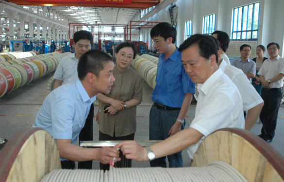 7月5日,江蘇省政府副秘書長朱步樓率領省政府科技創新工程督查組一行來江蘇上上電纜集團調研,常州市政府副秘書長、市科教城管委會主任陳建新、溧陽市副市長劉敏等領導陪同調研。集團常務副總經理丁志鴻、總工程師李斌等陪同督查組一行參觀了西廠區特種電纜生產基地。